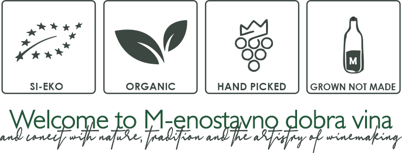 The story of M–enostavno dobra vina began in 2009, when Gregor and Tjaša designed a new wine brand and took over the family estate. We decided on “new” ideas with dedication to the land and started with organic practices, which rely on natural farming methods that respect the rhythms of nature.